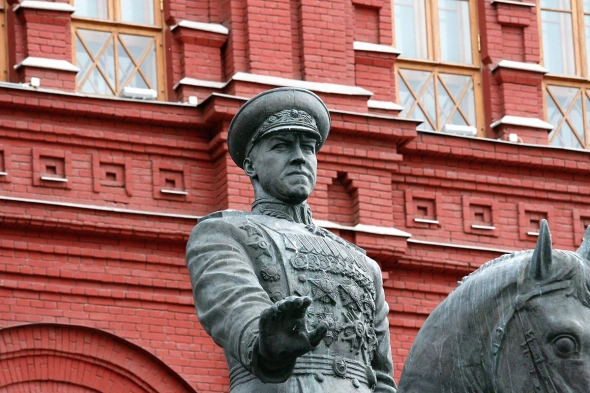 Памятник маршалу Жукову был установлен на Манежной площади 8 мая 1995 года, к 50-летию Победы в Великой Отечественной войне. Монумент создали скульптор Вячеслав Клыков и архитектор Юрий Григорьев. Памятник представляет собой Георгия Жукова на лошади, принимающего парад Победы в июне 1945 года. Монумент хотели установить прямо на Красной площади, однако от плана пришлось отказаться, так как она входит в список Всемирного наследия ЮНЕСКО.