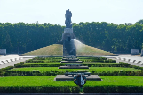 Скульптура «Воин-освободитель» расположена в берлинском Трептов-парке, где захоронено более 7 тыс. тел погибших бойцов. Монумент был открыт в 1949 году и стал заключительной частью скульптурного триптиха вместе с волгоградской «Родиной-матерью» и магнитогорским «Тыл — фронту» скульптора Евгения Вучетича.