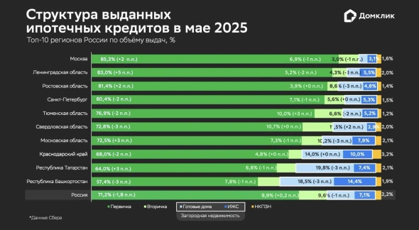 «Домклик» оценил распределение ипотечного спроса в мае 2025 года