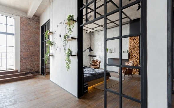 Классический лофт давно вышел из моды, а кирпичные стены и брутальная атмосфера сменилась более облегченными конструкциями из металла. И его можно сочетать со стилем индастриал, который характеризуется использованием промышленных материалов (металл, стекло и бетон). Сочетание полированного металла с бархатом или необработанной фактурой бетона отлично смотрится как с современной, так и с футуристичной мебелью, говорит Анна Доброковская.