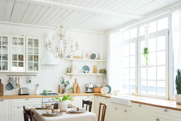 Романтика стиля прованс с пастельными оттенками и цветочными узорами находит свое место рядом с хай-тековскими технологиями и гладкими поверхностями. Это может выглядеть как старинный комод рядом с ультрасовременным телевизором или кухня с деревянными фасадами и хромированными аксессуарами, говорит Мария Паршина. Для оформления жилья можно использовать открытую проводку в ретростиле или обои с мелким цветочным принтом в стиле прованс и винтажную мебель, разбавляя интерьер современными деталями: биокамином, системой «умный дом» и современным освещением. Таким образом, мягкие, приглушенные оттенки прованса смягчают холодность хай-тека, добавляет эксперт.