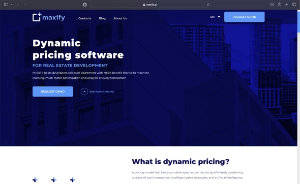 Британская разработка — платформа Maxify — использует принцип динамического ценообразования. С ее помощью девелоперы могут автоматизировано корректировать цены на квартиры в своих объектах в соответствии с текущим спросом и реалиями рынка в моменте. Разработчики уверяют, что благодаря сложным алгоритмам и анализу каждой сделки с помощью машинного обучения сервис Maxify способен помочь застройщику увеличить выручку с продажи каждой квартиры на 8,9%.