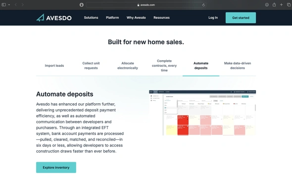 Avesdo представляет собой единую площадку, где можно распределять и резервировать сделки вне зависимости от того, как именно они осуществляются: в офисе продаж или удаленно. Платформа также позволяет заключать договоры и управлять всем их жизненным циклом от начала оформления до этапа подписания. Кроме того, в сервис интегрирована система электронных платежей для более удобной сверки и согласования сделок.