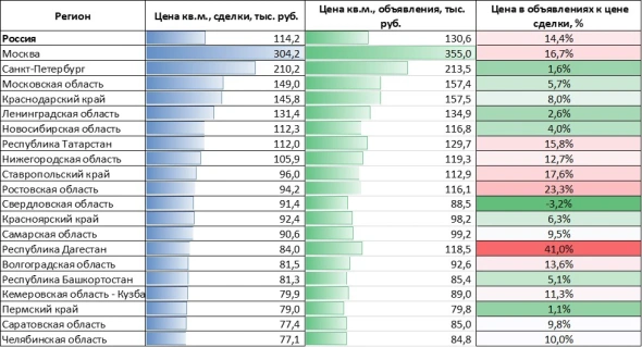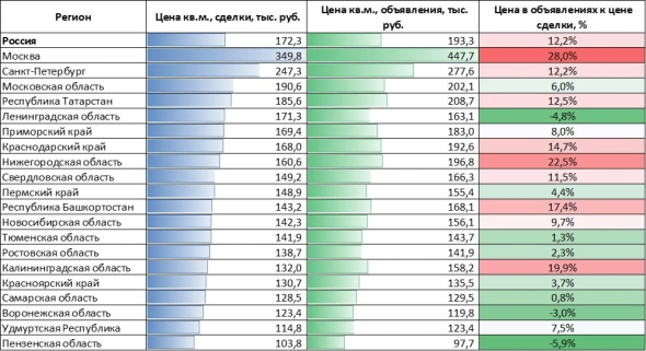 При этом в отдельных регионах разрыв намного существеннее. Так, в Москве он составляет 28%, в Нижегородской области — 22,5%, в Калининградской — 19,9%. Аналитики обращают внимание, что уровень выше среднего в основном отмечен в регионах, которые пользуются повышенным спросом у покупателей жилья.