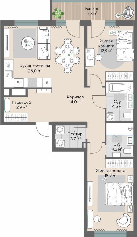 | Описание: | Двухкомнатная квартира бизнес‑класса в ЖК «Нагорный» с удобной по продуманности планировкой: большая кухня‑гостиная, мастер-спальня, изолированная спальня, полноценный гардероб и уютная лоджия — идеальное решение для семейной пары. Пространство для жизни: