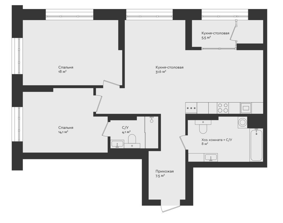 | Тип комнат: | Раздельные |