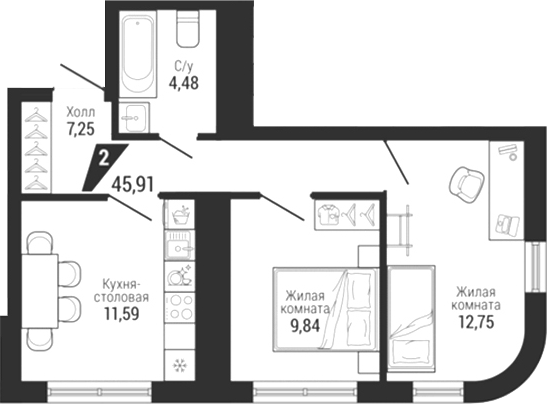 | Общая площадь: | 45.91 м2 |