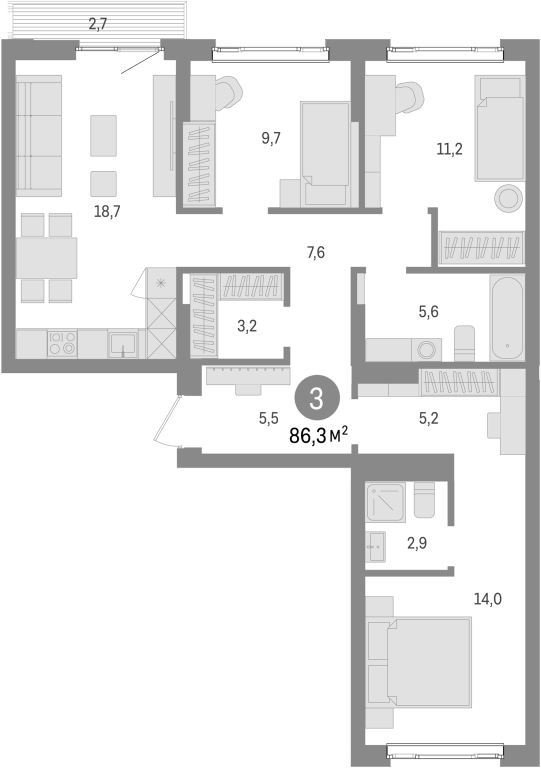 | Общая площадь: | 86.3 м2 |