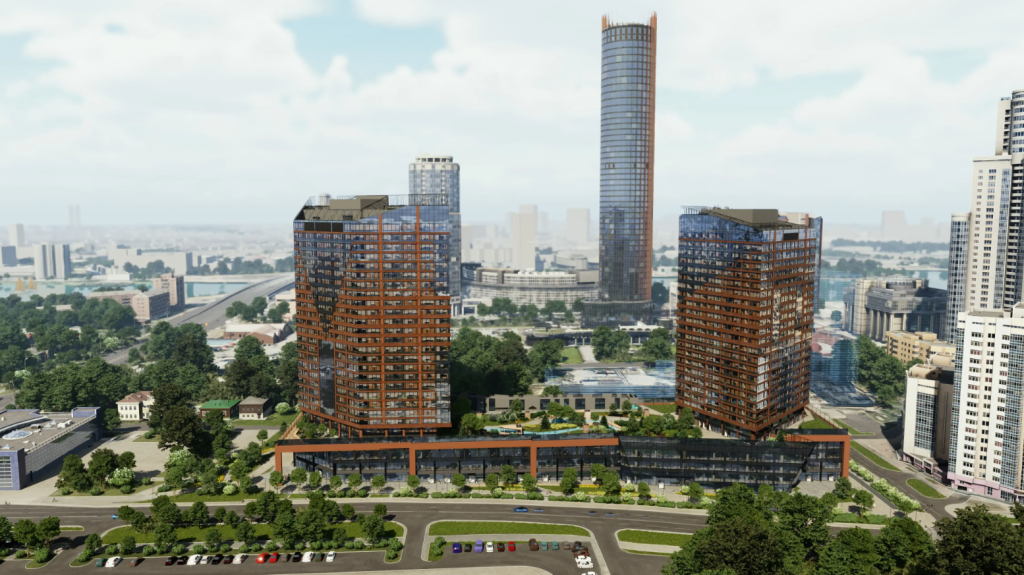 Верх-Исетский р-н, Центр мкр Комплекс апартаментов «Re:Volution Towers» возводится в центре Екатеринбурга, на улице Маршала Жукова – рядом с Екатеринбург-City. Это деловой центр мегаполиса, где принимаются судьбоносные решения в политике и бизнесе. Комплекс состоит из двух башен в 27 и 28 этажей. Два дома объединены четырехэтажным стилобатом, где будут располагаться помещения общественного назначения с детскими зонами и зонами отдыха. В доме будет работать профессиональная управляющая компания, которая обеспечит сервис на уровне пятизвездочного отеля в режиме 24/7. Паркинг займёт несколько уровней в подземной и надземной части стилобата. Спуститься к машине можно будет на лифте с любого этажа. Количество машиномест — 485 шт. Двор будет расположен на стилобате и по периметру оборудован стеклянным ограждением высотой 2 метра. Ландшафтный дизайн, лаунж-зоны, спортивные и детские площадки, велодорожка, зоны для занятий спортом и активного досуга, всё это будет во дворе с превосходным видом на город. На выбор покупателей — 1, 2, 3 и 4-х комнатные апартаменты площадью от 51 до 128 кв. м с лаконичными и продуманными планировками и с планировками формата «open space». Из окон открываются панорамные виды на Екатеринбург-Сити и набережную Городского пруда. |