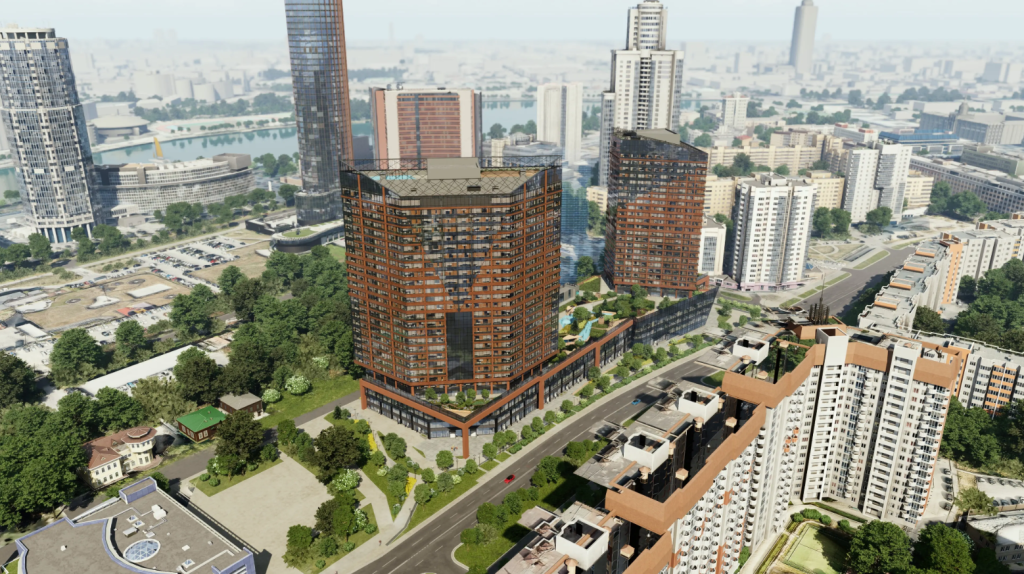 Верх-Исетский р-н, Центр мкр Комплекс апартаментов «Re:Volution Towers» возводится в центре Екатеринбурга, на улице Маршала Жукова – рядом с Екатеринбург-City. Это деловой центр мегаполиса, где принимаются судьбоносные решения в политике и бизнесе. Комплекс состоит из двух башен в 27 и 28 этажей. Два дома объединены четырехэтажным стилобатом, где будут располагаться помещения общественного назначения с детскими зонами и зонами отдыха. В доме будет работать профессиональная управляющая компания, которая обеспечит сервис на уровне пятизвездочного отеля в режиме 24/7. Паркинг займёт несколько уровней в подземной и надземной части стилобата. Спуститься к машине можно будет на лифте с любого этажа. Количество машиномест — 485 шт. Двор будет расположен на стилобате и по периметру оборудован стеклянным ограждением высотой 2 метра. Ландшафтный дизайн, лаунж-зоны, спортивные и детские площадки, велодорожка, зоны для занятий спортом и активного досуга, всё это будет во дворе с превосходным видом на город. На выбор покупателей — 1, 2, 3 и 4-х комнатные апартаменты площадью от 51 до 128 кв. м с лаконичными и продуманными планировками и с планировками формата «open space». Из окон открываются панорамные виды на Екатеринбург-Сити и набережную Городского пруда. |