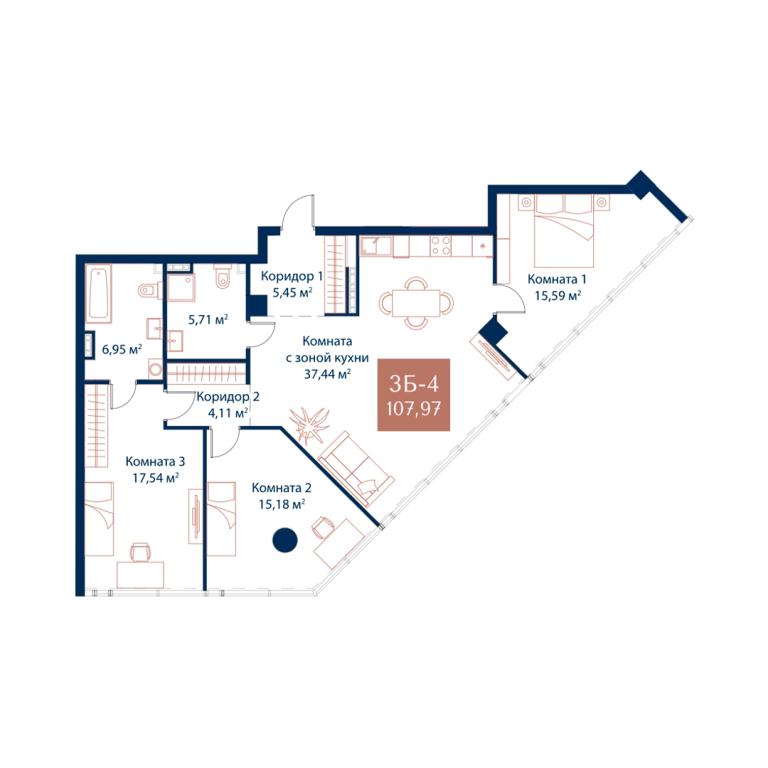 | Общая площадь: | 107.97 м2 |