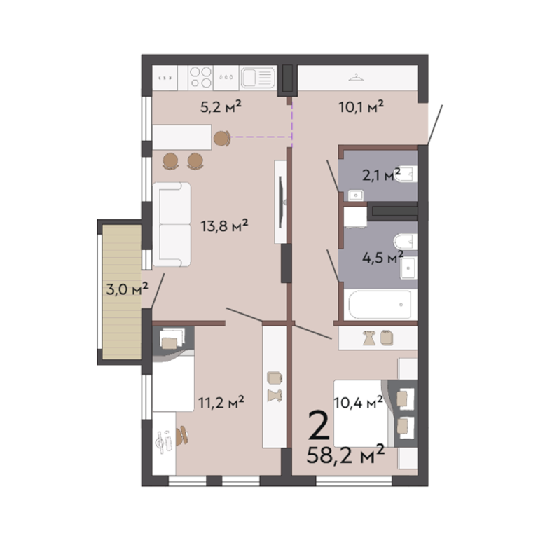 | Общая площадь: | 58.2 м2 |
