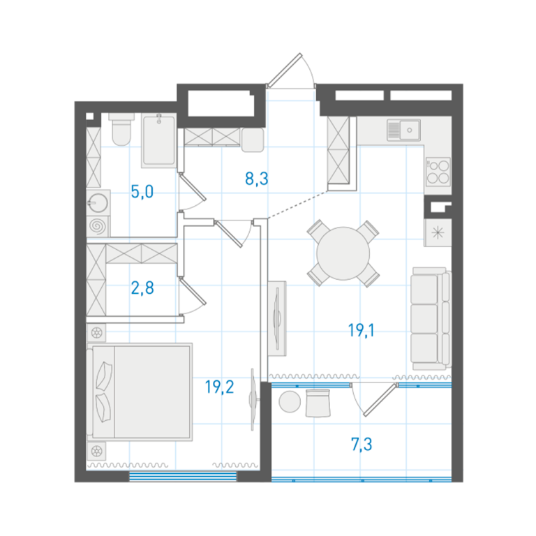 | Общая площадь: | 55 м2 |