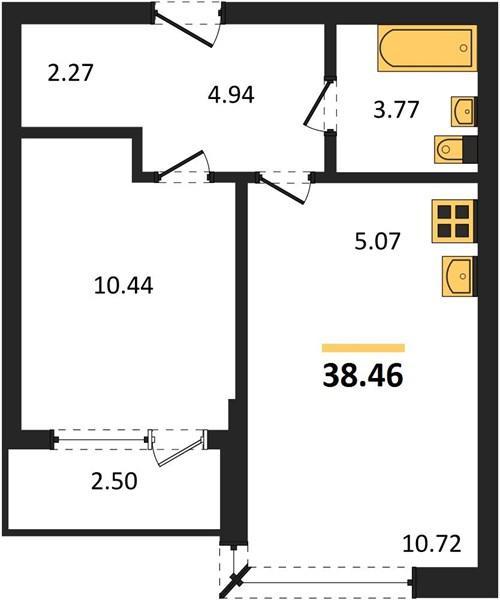 Общая площадь:38.46 м2
