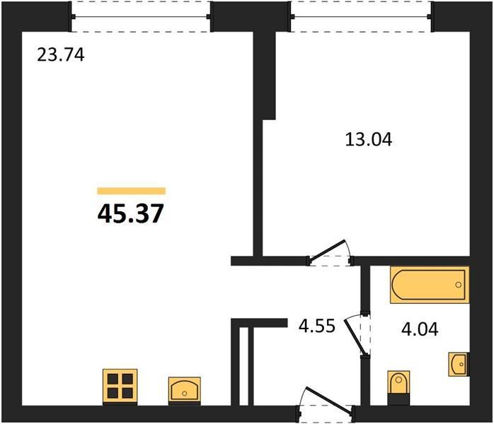 | Общая площадь: | 45.35 м2 |