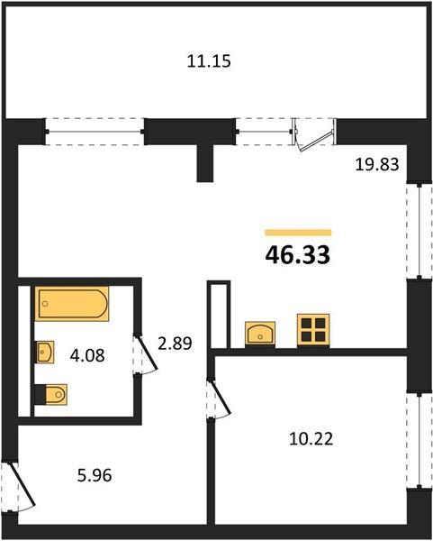 | Общая площадь: | 46.33 м2 |