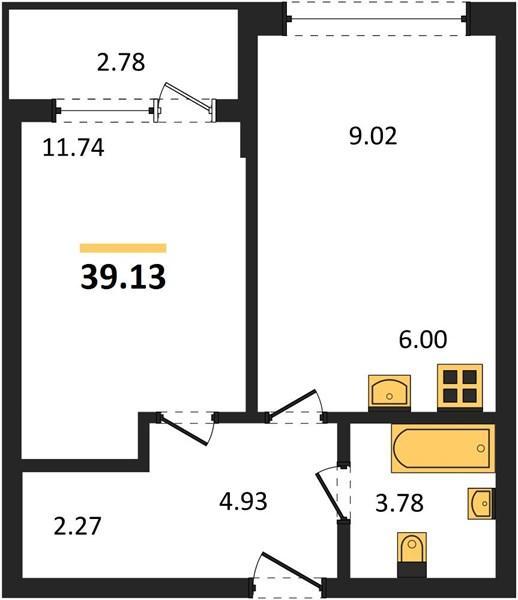 | Общая площадь: | 39.13 м2 |