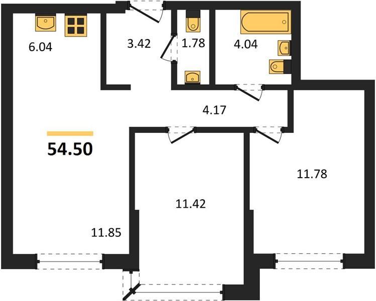 | Общая площадь: | 54.5 м2 |