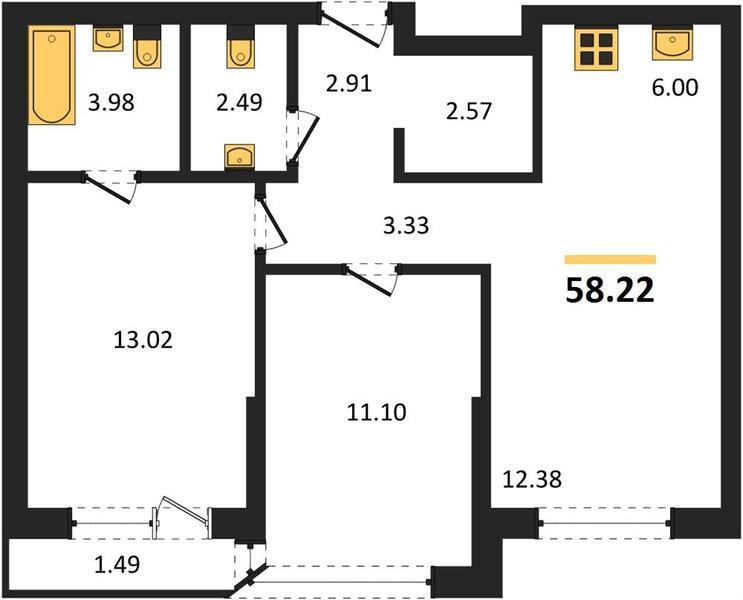 | Общая площадь: | 58.22 м2 |