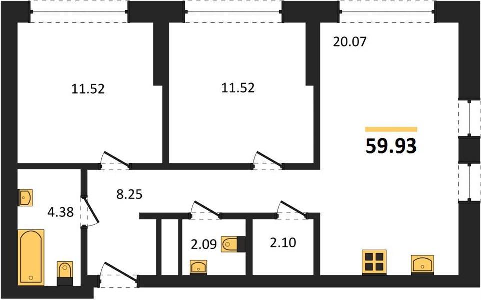 | Общая площадь: | 59.93 м2 |