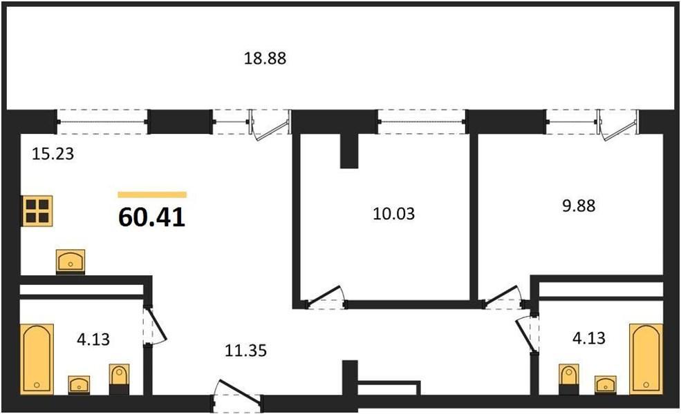 | Общая площадь: | 60.41 м2 |