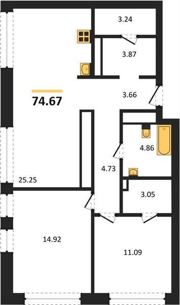 | Общая площадь: | 74.67 м2 |