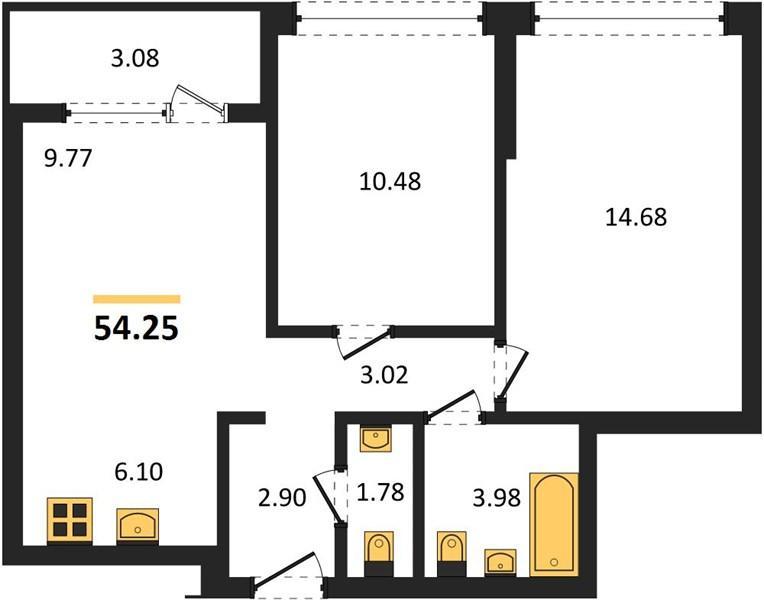 | Общая площадь: | 54.25 м2 |