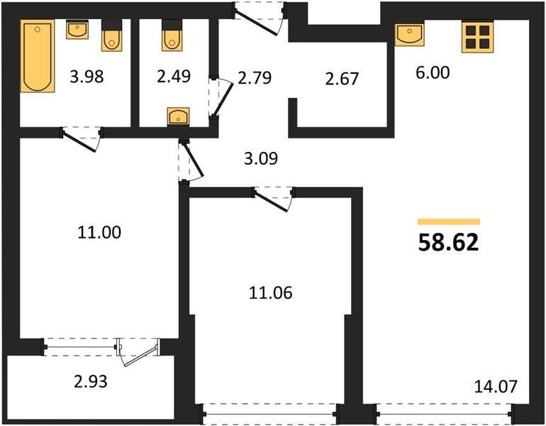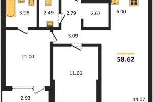 | Общая площадь: | 58.62 м2 |