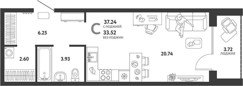 | Тип квартиры: | Студии |