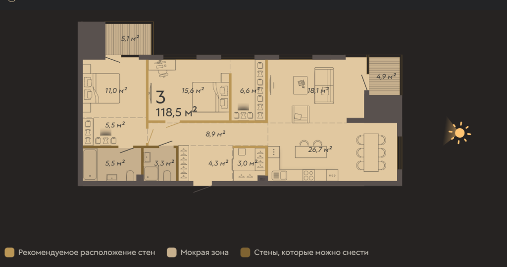 | Общая площадь: | 118.5 м2 |