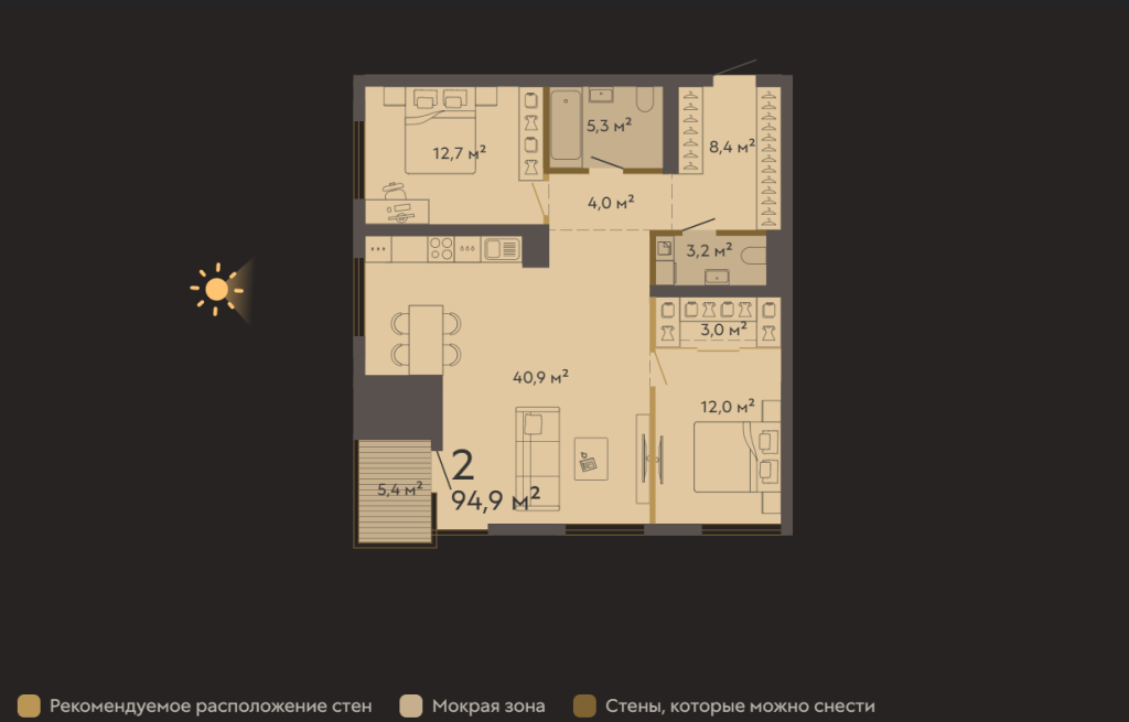 | Общая площадь: | 94.9 м2 |