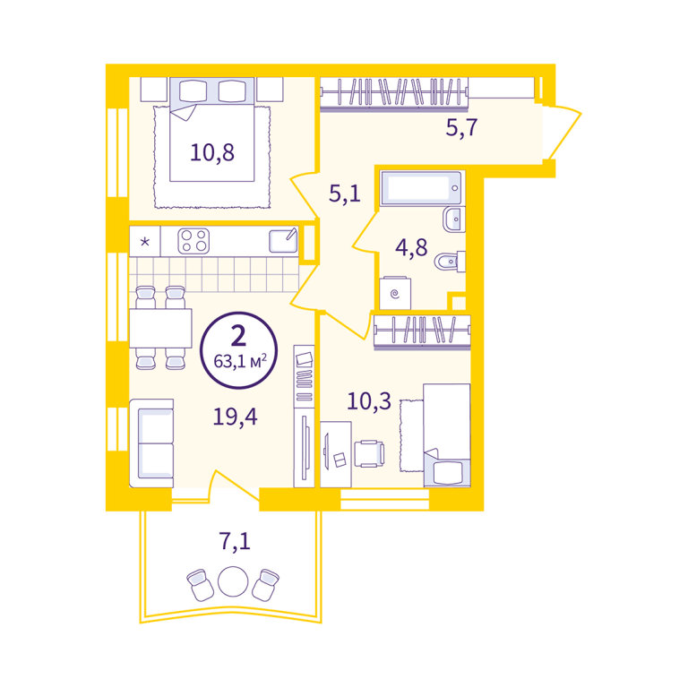 | Общая площадь: | 57.4 м2 |