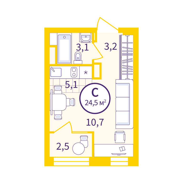 | Тип квартиры: | Студии |