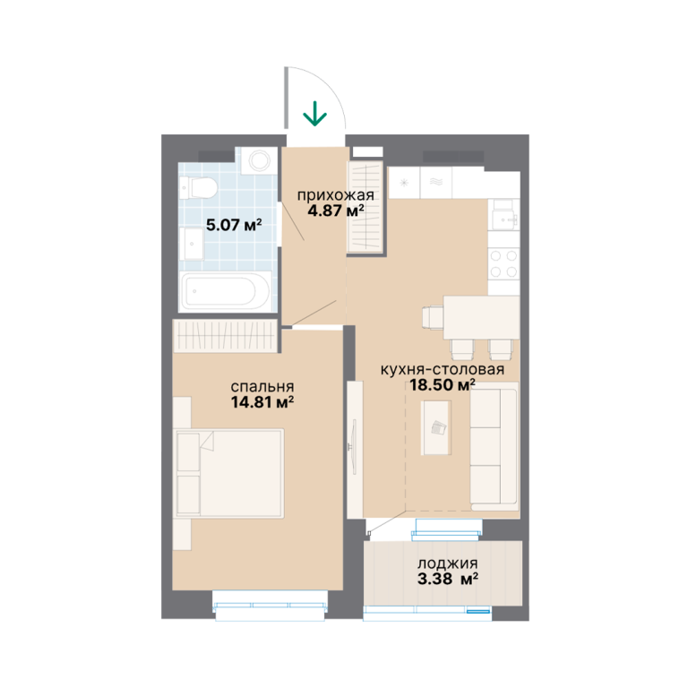 | Тип квартиры: | 1-комнатные |