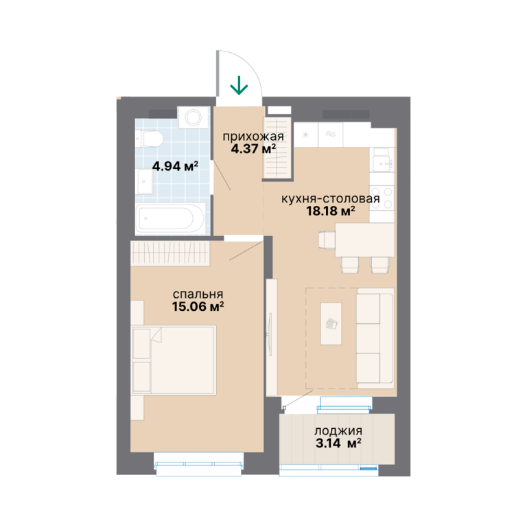 | Тип квартиры: | 1-комнатные |