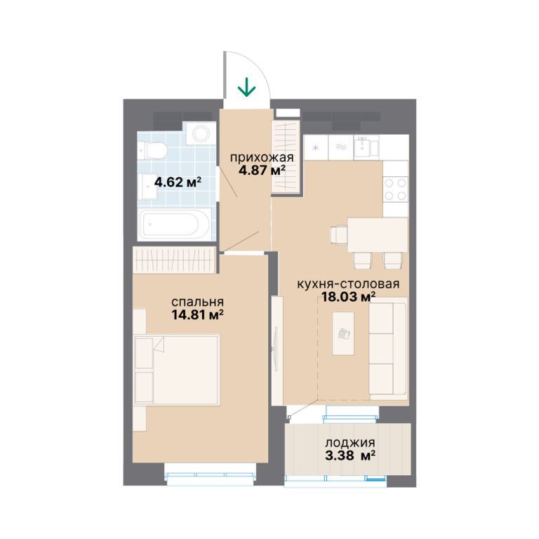 | Тип квартиры: | 1-комнатные |
