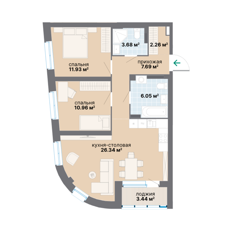 | Количество комнат: | 2 |