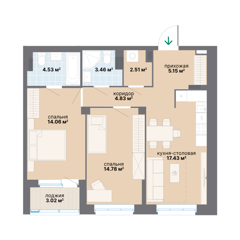 | Общая площадь: | 69.77 м2 |