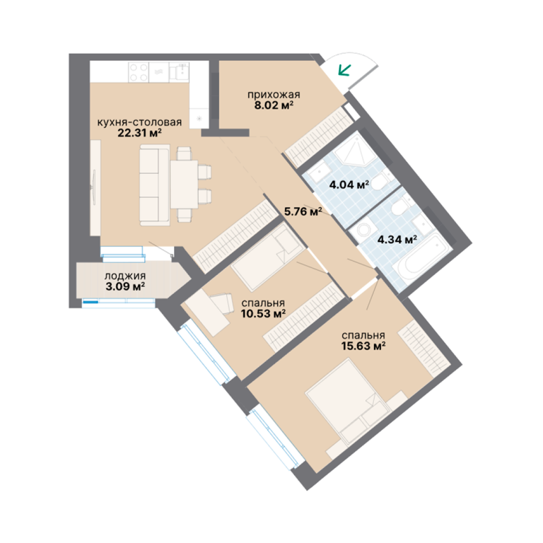 - 59.2 м2