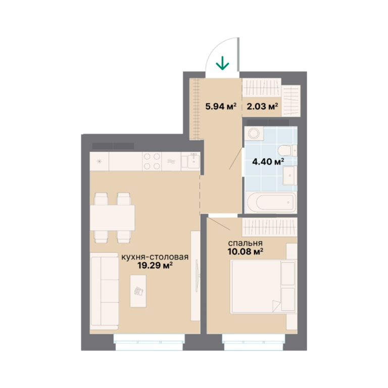 | Общая площадь: | 41.74 м2 |