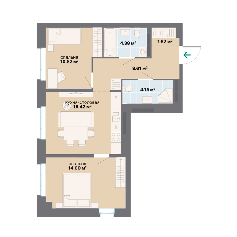 | Количество комнат: | 2 |