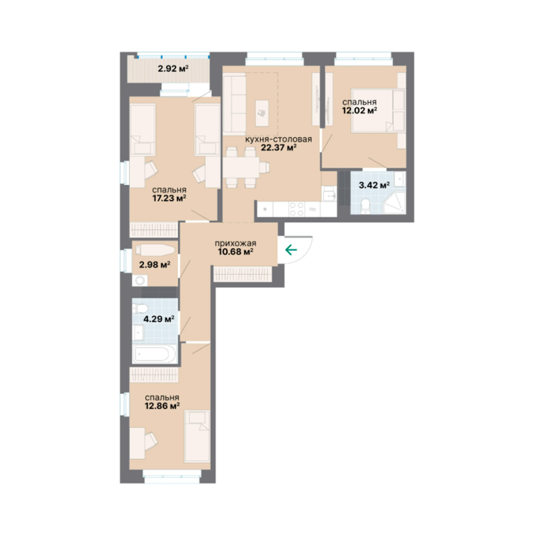 | Тип квартиры: | 3-комнатные |