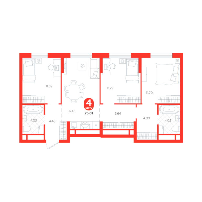 | Общая площадь: | 75.6 м2 |