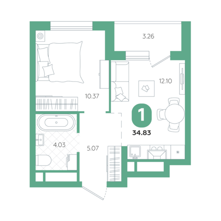 | Общая площадь: | 34.8 м2 |