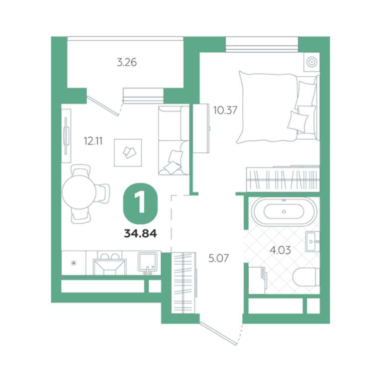 | Общая площадь: | 34.84 м2 |