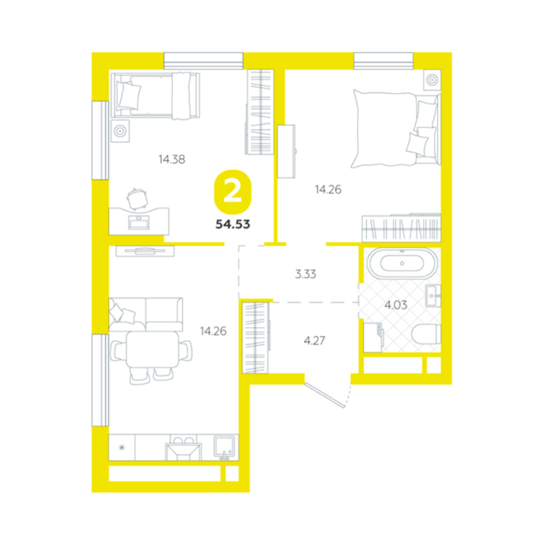 | Общая площадь: | 54.5 м2 |