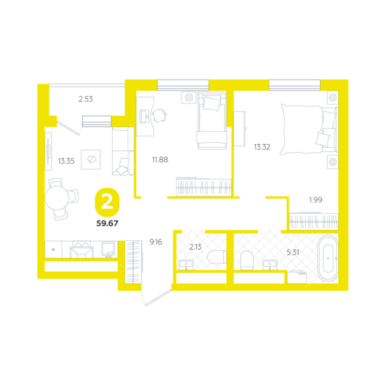 | Общая площадь: | 59.7 м2 |