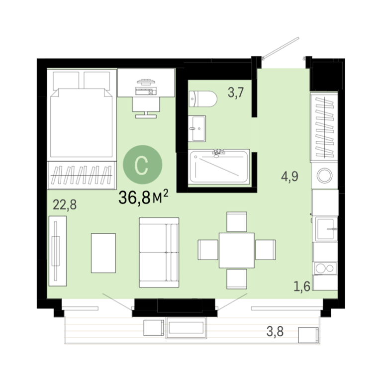 | Общая площадь: | 36.8 м2 |