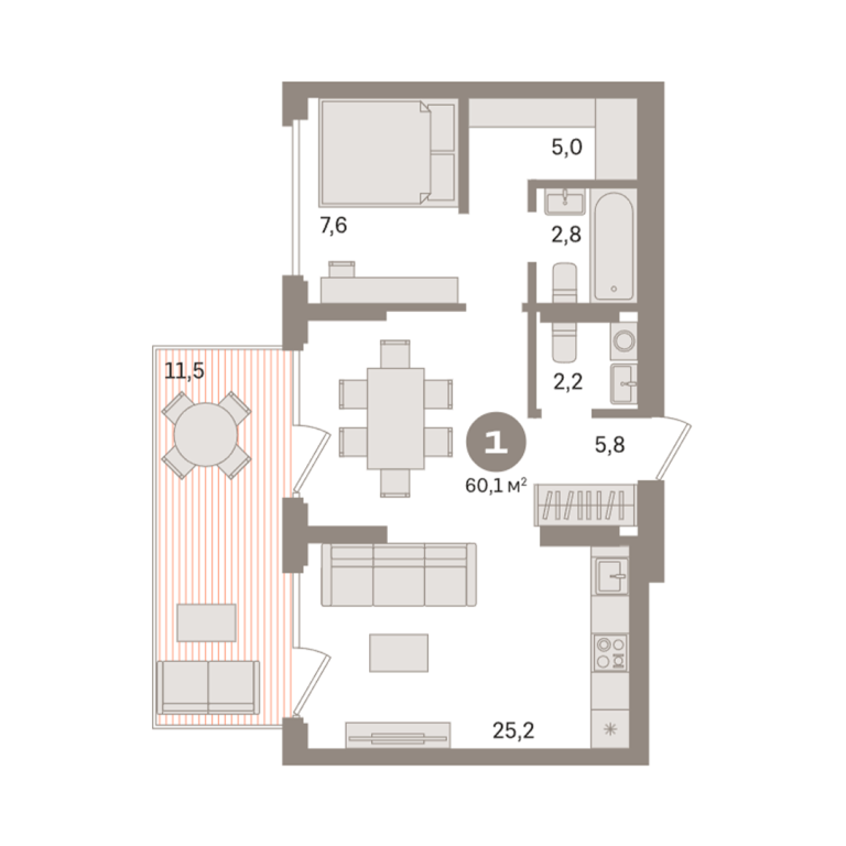 | Общая площадь: | 60.1 м2 |