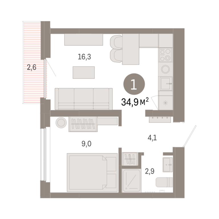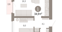 | Общая площадь: | 34.9 м2 |